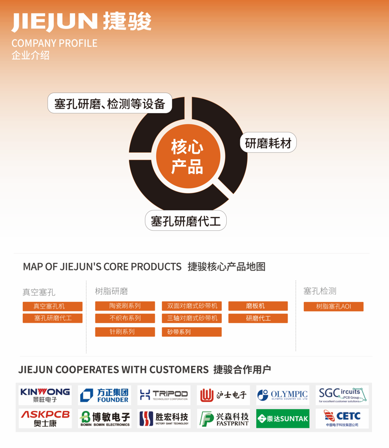 廣東捷駿電子科技有限公司,在廣州捷駿的基礎(chǔ)上成立于2018年。經(jīng)過多年的不懈努力,逐步成長(zhǎng)為以真空塞孔研磨檢測(cè)設(shè)備、研磨耗材、真空塞孔代工為支柱的綜合型公司。公司集專業(yè)制造、自主研發(fā)、銷售為一體,取得多項(xiàng)SGS管理體系認(rèn)證,獲得廣東省高新技術(shù)企業(yè)和專精特新中小企業(yè)證書,多項(xiàng)產(chǎn)品被評(píng)為廣東省名優(yōu)高新技術(shù)產(chǎn)品。